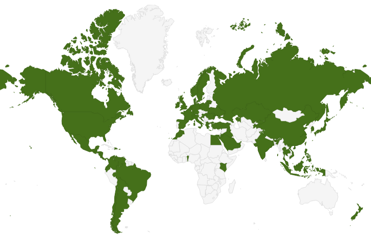 Certificates have been issued in 68 Countries/territories and all 50 U.S. states and the District of Columbia